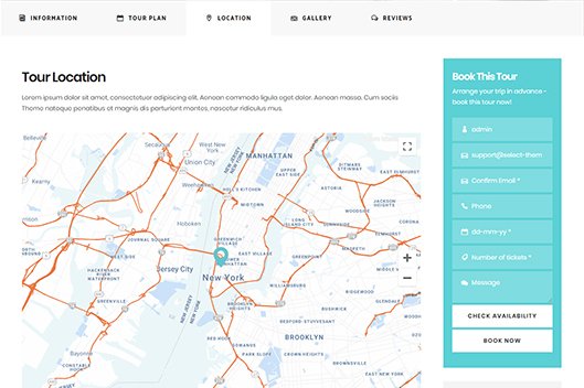 Travel FeaturesPin your destinations right on the map, add user reviews, display tour plans, and more.
