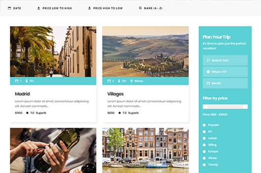 Tour LayoutsAn amazing collection of tour templates lets you present your travel business in the best lightShowcase travel tours and travel packages to your visitors in a detailed manner with SetSail’s striking tour lists and singles templates! You can also enable various filters & search criteria.SpainTaiwanJapanHamburgStockholm