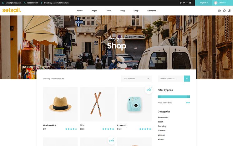 Shop & BlogStart selling your products right now and share your thoughts & ideas with the world!SetSail’s stunning blog & shop layouts let you create the ultimate blogging experience and build your online store with utmost ease. The theme is also compatible with WooCommerce. Striking TemplatesTravel BlogAdventure ShopAwesome Quote